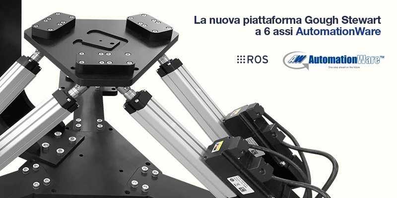 A conferma del costante impegno dell’azienda nello sviluppo di sistemi robotici, AutomationWare annuncia la sua prima piattaforma Gough-Stewart a 6 assi (9 virtualizzabili su Piattaforma ROS).