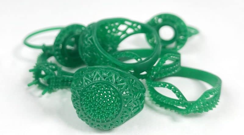 Nel mondo della gioielleria la manifattura additiva è già disponibile oggi per la produzione dei modelli master ad altissima risoluzione direttamente da Cad utilizzando il materiale Figure 4 JCast-GRN 10 di 3D Systems. Questo materiale produce cenere e residui minimi dopo il burnout facilitando la fusione.