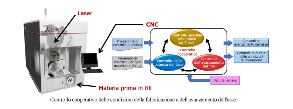 L’uso esclusivo di un controller numerico computerizzato (CNC) per il controllo cooperativo delle condizioni di lavorazione, quali l’avanzamento del filo, la potenza del laser e l’avanzamento dell’asse, rende possibile la produzione additiva di strutture tridimensionali di alta precisione e alta qualità.