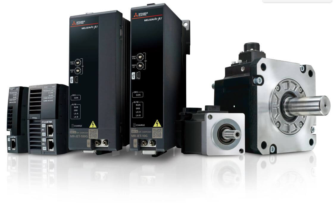 La dinamica di movimento è assicurata dai servosistemi MR-J5 e MR-J5D, dotati di banda passante a 3,5 kHz e risoluzione a 26 bit, affiancati dai sistemi Melservo-JET e dai servomotori HK per applicazioni ad alta produttività.