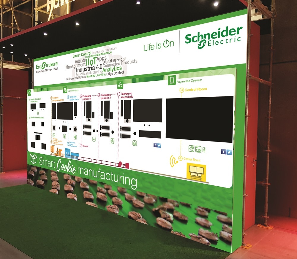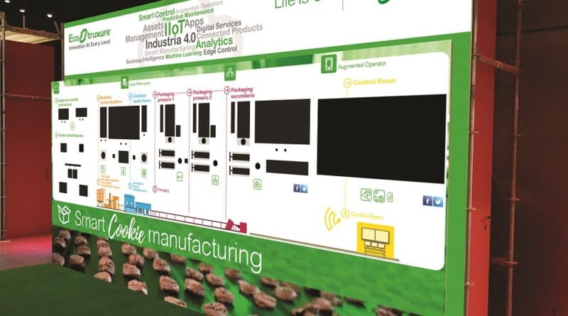 La fabbrica di biscotti 4.0 “Smart Cookie Manufacturing” che verrà presentata da Schneider Electric nell’area Know How 4.0 di SPS (qui tutti i dettagli) ha come obiettivo quello di tradurre la piattaforma di soluzioni Ecostruxure in una soluzione concreta, con l’intento di mostrare come l’utilizzo di prodotti connessi, associato all’impiego di piattaforme di controllo evolute e all’integrazione mediante software adeguati, possa permettere di rendere gli impianti più efficienti, più produttivi, più sostenibili e in grado di adeguarsi in tempi rapidi alle richieste dei clienti finali.