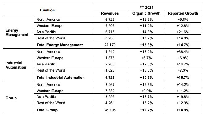 L’azienda ha chiuso il 2023 con un fatturato di 35,9 miliardi di euro, con una crescita organica del 12,7% rispetto al 2022. Questo fatturato è però generato in gran parte dalla business area dedicata all’Energy Management (28,24 miliardi), mentre la parte di Industrial Automation ha generato ricavi per 7,66 miliardi di euro.