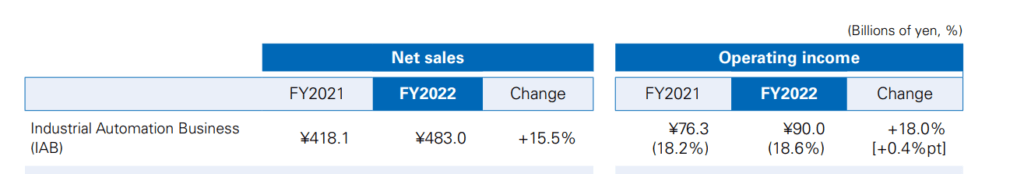 Il mercato delle attrezzature per l’industria automobilistica ha registrato un aumento annuo delle vendite di nuove auto, dovuto principalmente a un miglioramento nella fornitura di alcune parti di semiconduttori e a una robusta domanda, principalmente per le attrezzature relative ai veicoli elettrici, in linea con l’espansione del mercato incentrato sui veicoli elettrici. In questo contesto, l’attività ha visto un aumento sia degli ordini che dei ricavi su base annua, dovuto principalmente all’aumento delle attrezzature relative ai veicoli elettrici, come motori e inverter, componenti elettrici e prodotti legati ai sistemi avanzati di assistenza alla guida (ADAS), oltre che al deprezzamento dello yen e all’aumento dei prezzi. Di conseguenza, i ricavi per questo segmento sono aumentati del 3% su base annua, raggiungendo 1.710,6 miliardi di yen.