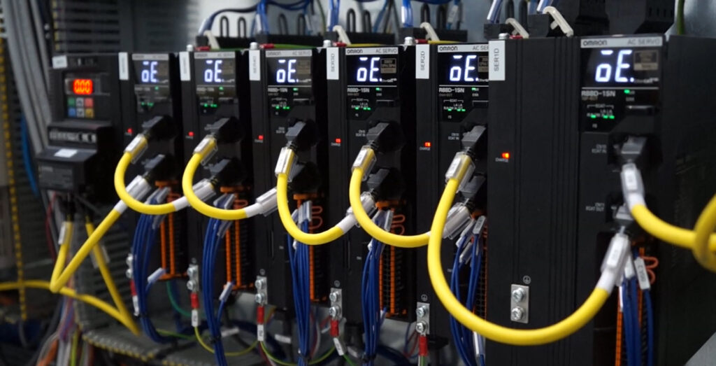 Nello specifico, il controllore NX701 1600 gestisce 34 servosistemi Omron 1S e 6 inverter 3G3MX2. Parte degli azionamenti sono deputati alla sigillatura della confezione basata su sistema di termoregolazione Omron NX-TC Perfect Sealing. Questa tecnologia stabilizza la temperatura filtrando tutti i disturbi legati alla termoregolazione per lasciare agli end user la facoltà di variare lo spessore delle confezioni.