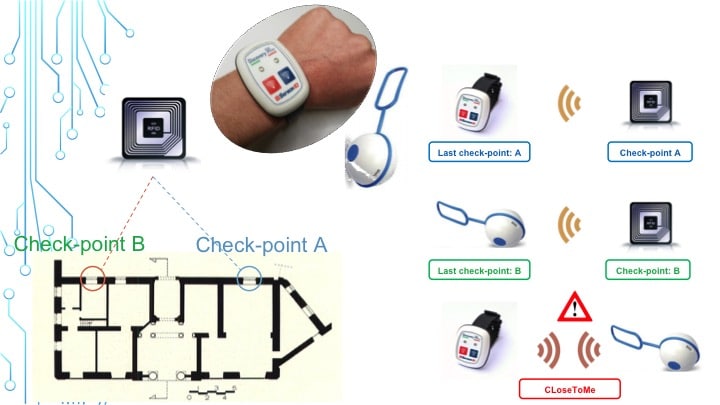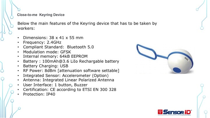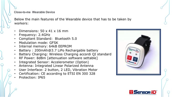 È in questo contesto che è nata l’idea di sfruttare la tecnologia Bluetooth per prevenire e monitorare eventuali contatti tra i lavoratori nelle linee produttive. I dispositivi (braccialetti o portachiavi) segnalano quando due persone si vengono a trovare a una distanza inferiore a un metro e ottanta, inviando un alert a chi li indossa e conservando in memoria il codice identificativo del soggetto di cui si è registrato il contatto. In base all’intensità del segnale emesso dai dispositivi, infatti, è possibile determinare la distanza tra di essi, il cui limite può anche essere rimodulato dal datore di lavoro.