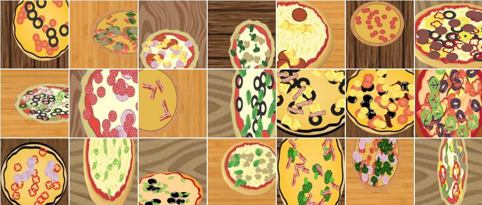 Per valutare il metodo pizzaGAN, è stato creato un set di dati per la pizza sintetica con immagini di pizze riordinate in una sorta di clipart.