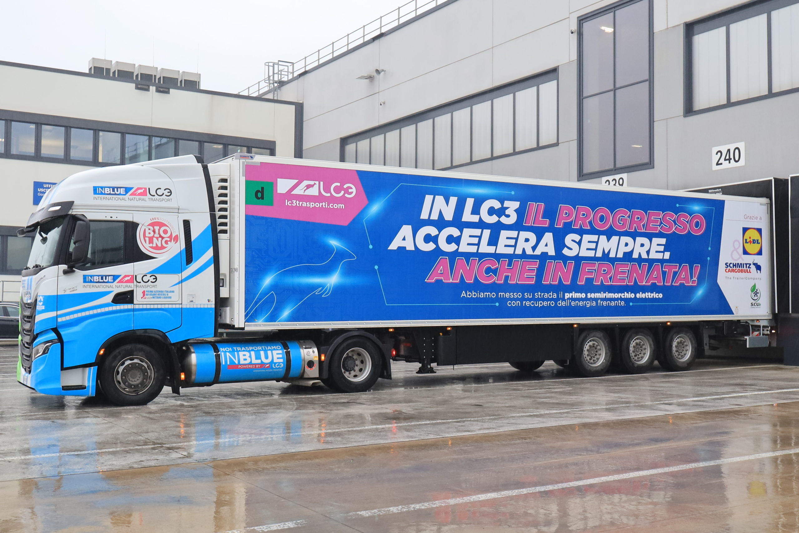 Lidl Italia ha annunciato l’introduzione del suo primo semirimorchio refrigerato elettrico, in linea con gli impegni al 2030 per la sostenibilità nella catena logistica. Realizzato in collaborazione con LC3 e Schmitz Cargobull, il semirimorchio utilizza due batterie al litio, ferro e fosfato da 32 kWh, che si caricano in 2 ore e forniscono un’autonomia di 4,5-10 ore. Le batterie si ricaricano anche durante la marcia e recuperano energia in frenata.
