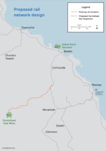 Nel progetto è prevista una linea ferroviaria di 189 chilometri che collegherà la miniera fino a Moranbah, dove si unirà all’esistente sistema ferroviario Goonyella, collegandosi ai terminali del carbone al Porto di Hay Point (espansione di Dudgeon Point) e al Porto di Abbot Point.