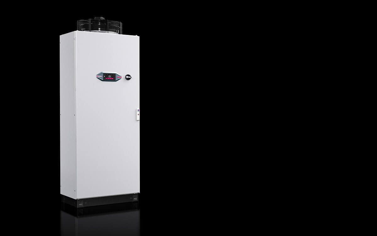 I nuovi TopTherm chiller Rittal, in un armadio VX25, combinano queste caratteristiche con un ingombro estremamente ridotto. Adatti a essere integrati in modo compatto e flessibile a batterie di armadi VX25, occupano il 34% in meno di superficie. La nuova tecnologia dei ventilatori, l’ottimizzazione del software e uno scambiatore di calore migliorato riducono la “carbon footprint” fino al 35%. Grazie alla tecnologia a microcanali, si ottiene l’intera potenza frigorifera utilizzando il 55% di refrigerante in meno.