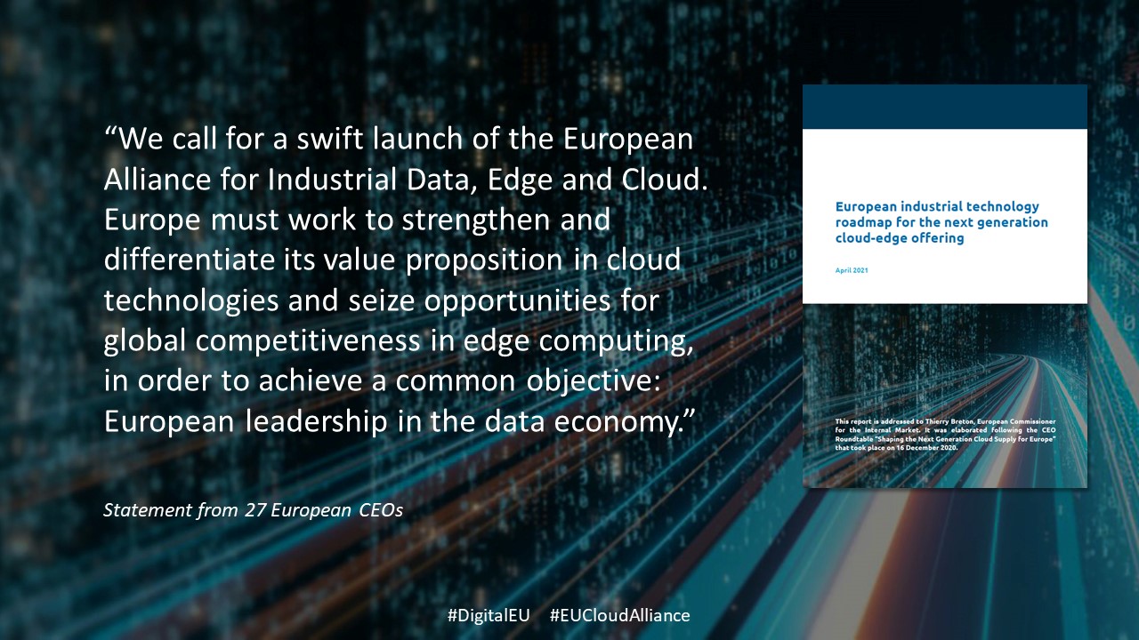 Tra i principali attori nel mondo del cloud italiano, con tre diverse piattaforme certificate AgID e accreditate presso la Commissione Europea dal 2015, IRIDEOS continua a profondere energie nelle iniziative cloud europee, con il fine di offrire alla pubblica amministrazione e alle imprese italiane servizi cloud sicuri e attenti alla sovranità dei dati. Questa volta, insieme ad altre 26 aziende europee attive nel mondo dei servizi cloud, ha condiviso una “Roadmap tecnologica europea per l’offerta cloud-edge di prossima generazione” (in inglese European industrial technology roadmap for the next generation cloud-edge offering) pubblicata dalla DG Connect della Commissione Europea.