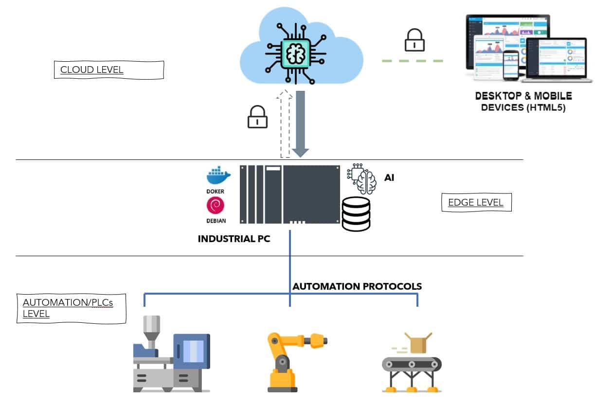 La soluzione è basata sull’utilizzo di reti neurali e algoritmi specializzati nella fault detection. I dati vengono acquisiti direttamente dall’automazione e vengono processati da algoritmi eseguiti su computer industriali presenti sull’impianto. In cloud vengono mandate solo le informazioni più importanti, filtrando in edge tutti i dati non utili a scopo manutentivo.