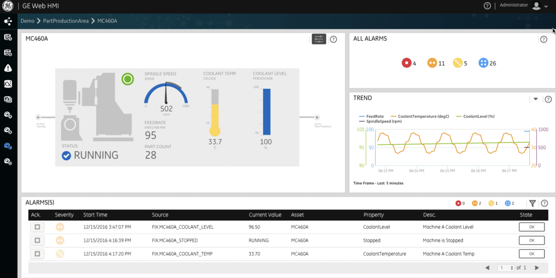 Utilizzata in combinazione con iFix, Cimplicity e Historian, tre tra i più apprezzati software di GE Digital, la Web HMI consente all’operatore di avere immediatamente sott’occhio tutte (e solo) le informazioni più rilevanti a seconda del contesto.