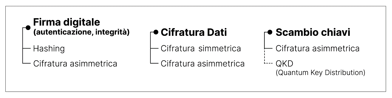 Inoltre, per fissare le idee, ricordo quali sono le modalità di cifratura e le conseguenti aree di applicazione:
