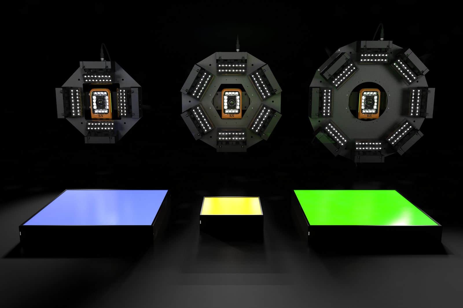 Le barre Led orientabili sono fruibili singolarmente o disposte in una struttura ad anello in gruppi di quattro, sei o otto. La retroilluminazione è invece fornita in pannelli Led in due dimensioni. Ogni illuminatore può emettere fino a quattro diversi colori, a scelta. La gamma cromatica include il bianco e spazia dagli infrarossi agli ultravioletti, passando per i colori nello spettro del visibile.