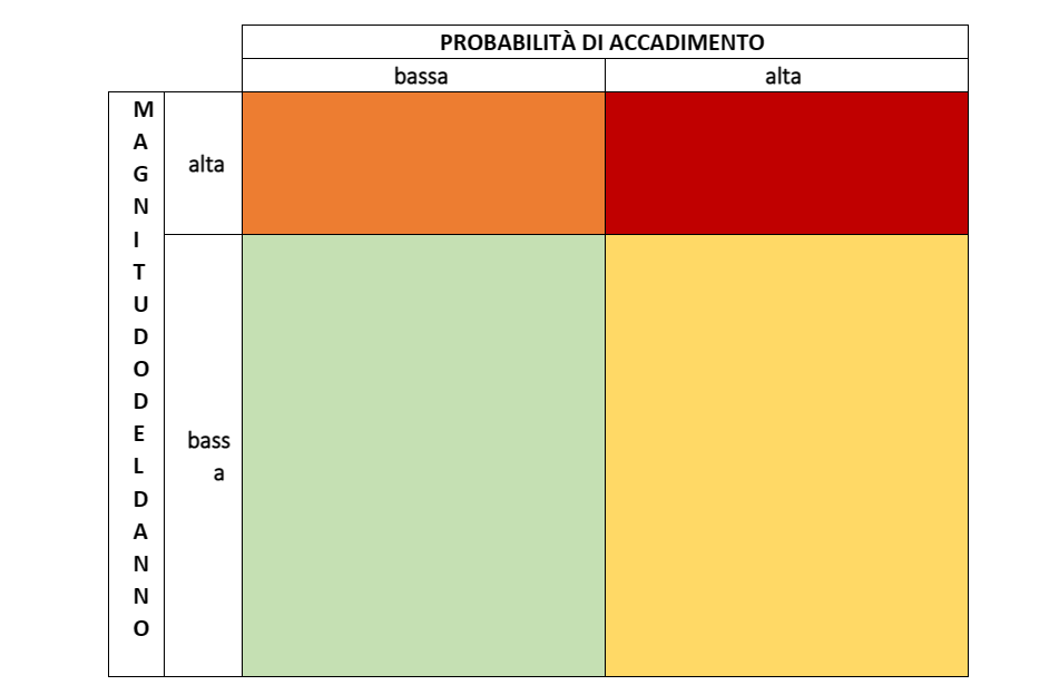 - il livello di pericolosità per l’Azienda di uno specifico evento dannoso, quale che sia, si misura considerando da un lato la sua probabilità di accadimento e dall’altro la magnitudo del danno provocabile;