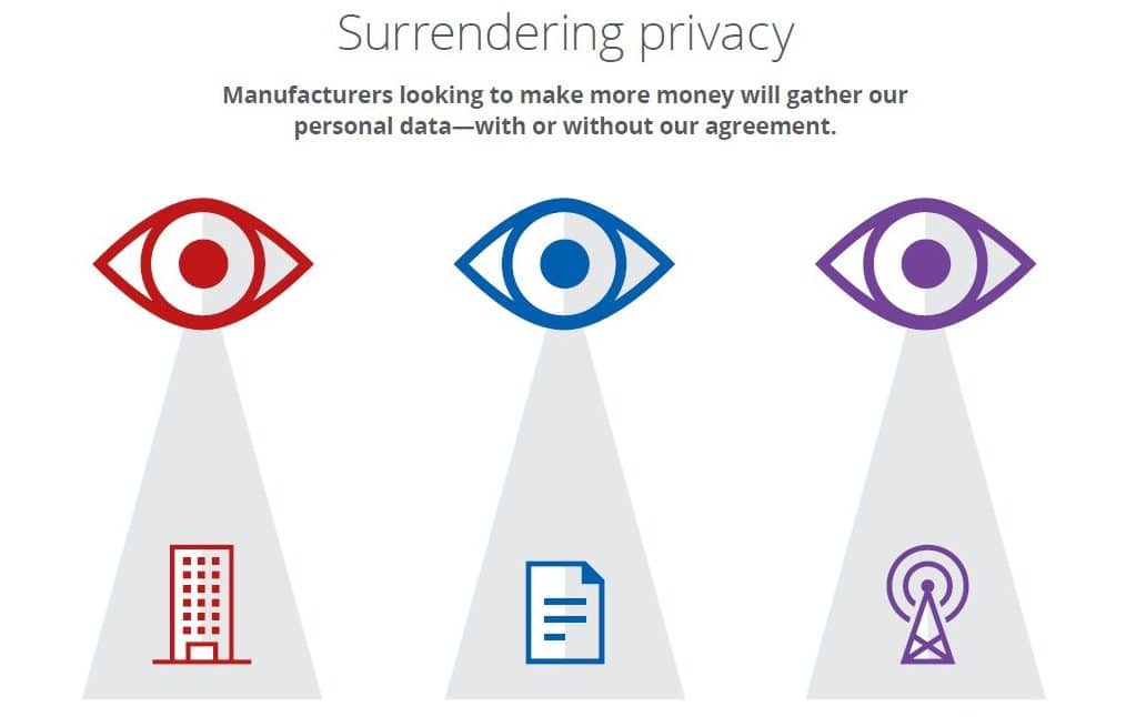 I responsabili marketing aziendali saranno particolarmente incentivati a osservare il comportamento dei consumatori per meglio comprenderne le esigenze e le preferenze di acquisto. E, visto che i clienti leggono raramente gli accordi sulla privacy, le aziende saranno tentate di cambiarli frequentemente, anche successivamente alla distribuzione di dispositivi e servizi, nel tentativo di acquisire maggiori informazioni e profitti.