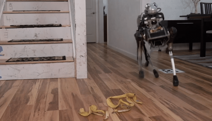 Dal punto di vista tecnologico, SpotMini è decisamente meno rude dei suoi predecessori militari, grazie al passaggio da “muscoli” idraulici a drive elettrici. È anche significativamente alleggerito e può funzionare per 90 minuti eseguendo una serie di compiti di assistenza. Dei suoi antenati militari, il robot borghese mantiene la straordinaria capacità di equilibrio e di riprendersi da situazioni estremamente complesse. Anche lui, comunque, è stato sottoposto a una serie di “torture” o piccoli dispetti, compreso il passaggio su una serie di bucce di banane che lo hanno inesorabilmente steso al suolo.