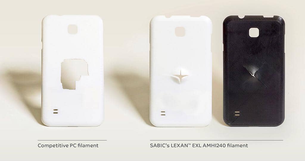 Il filamento Lexan EXL ha una temperatura di flessione di 140 °C, maggiore di quella dell’ABS, il che lo rende un valido candidato per impieghi in applicazioni che richiedono resistenza a temperature elevate e al fuoco.