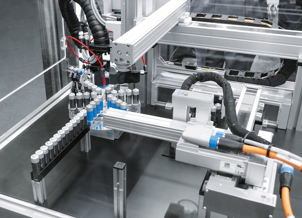 Il primo esempio mostrato da Festo ad Hannover, basato appunto su SCRAITEC, mostrava una linea per il controllo di qualità delle batterie, che vengono sollevate da un sistema di movimentazione. Combinando il nuovo controllo modulare CPX-E-CEC e il nuovo servo drive controller CMMT-AS, è possibile sorvegliare l’impianto in tempo reale, con il software di Resolto a controllare il funzionamento del motore e il posizionamento degli assi, pronto a segnalare ogni eventuale anomalia.