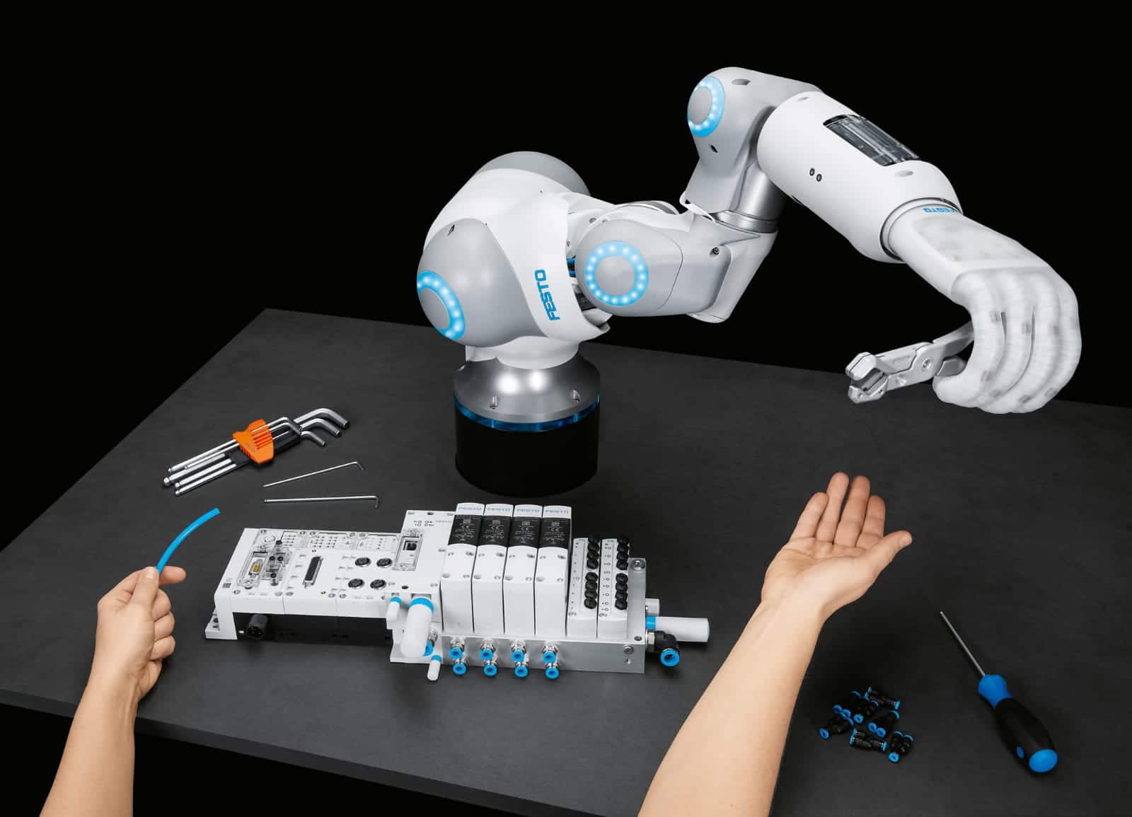 Per quanto siano interessanti i prototipi di robot “morbidi” mostrati da Festo, il vero punto focale per l’azienda tedesca è l’applicazione delle tecnologie di Intelligenza Artificiale, e in particolare del progetto Bionico, al lavoro di tutti i giorni, ai macchinari e alle linee di produzione.
