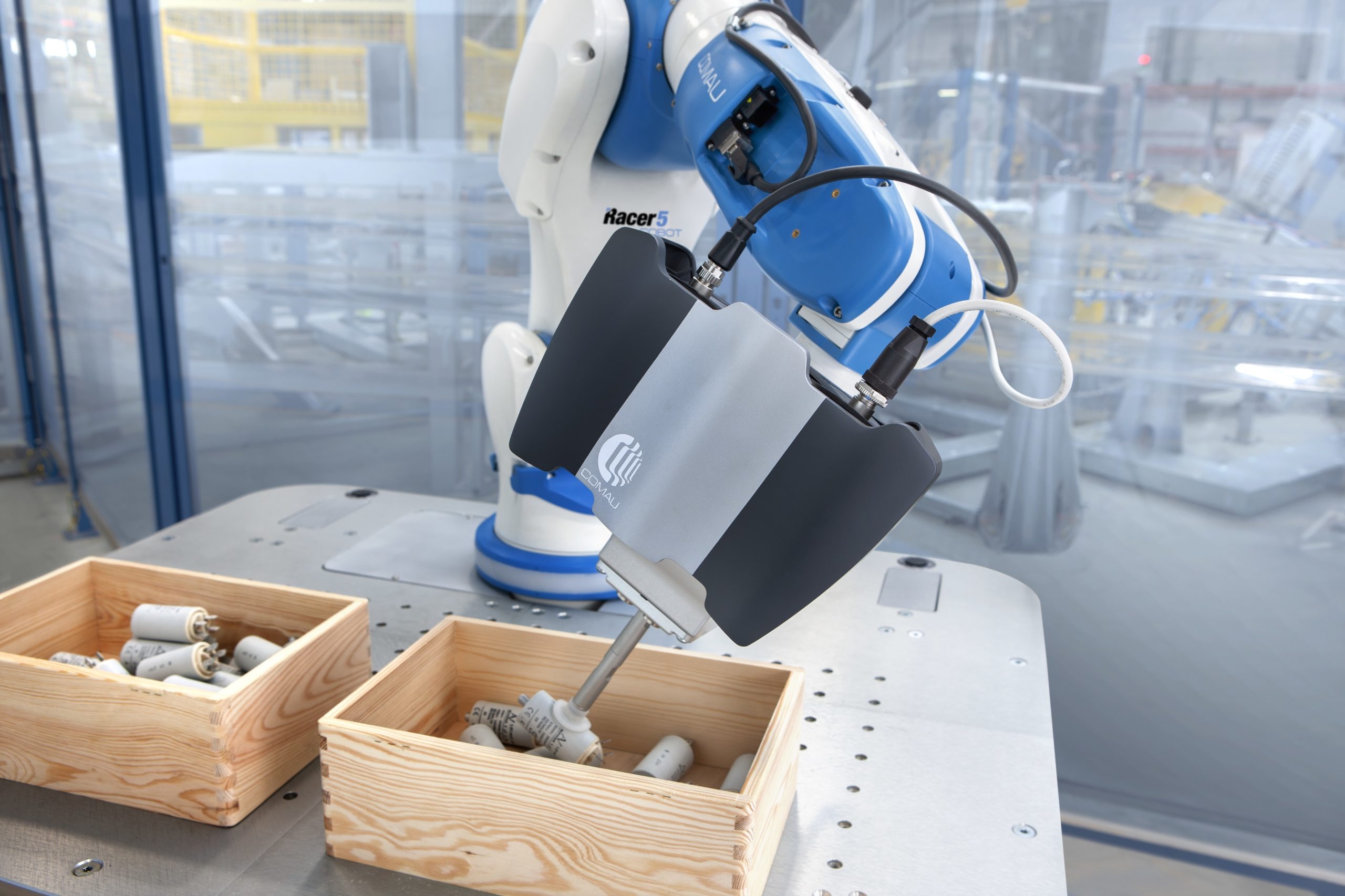 MI.RA/PICKER è il prodotto più recente della famiglia di sistemi di visione intelligenti indipendenti dall’hardware Machine Inspection Recognition Archetypes di Comau progettato per il prelievo di oggetti in sequenza casuale o random bin picking sulla base di capacità percettive. Nello specifico, si tratta di un sistema di presa automatizzato che utilizza due sensori laser ad alta risoluzione e una videocamera centrale per riconoscere, localizzare e afferrare autonomamente oggetti posizionati in modo non ordinato, a una velocità massima di 40 pezzi al minuto (PPM).