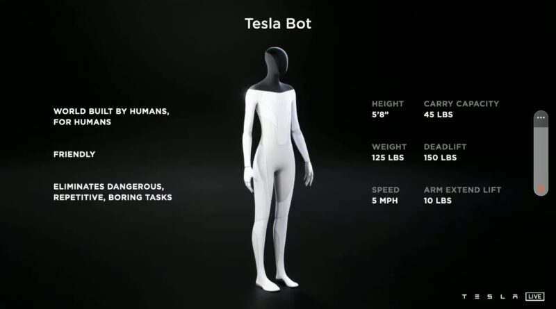 Dopo le supercar elettriche entro un anno arriverà Tesla Bot, il robot umanoide pensato per rendere migliore la vita degli umani: parola di Elon Musk. Del resto – dice il magnate statunitense – si tratta di due terreni d’impiego della stessa tecnologia, l’intelligenza artificiale.