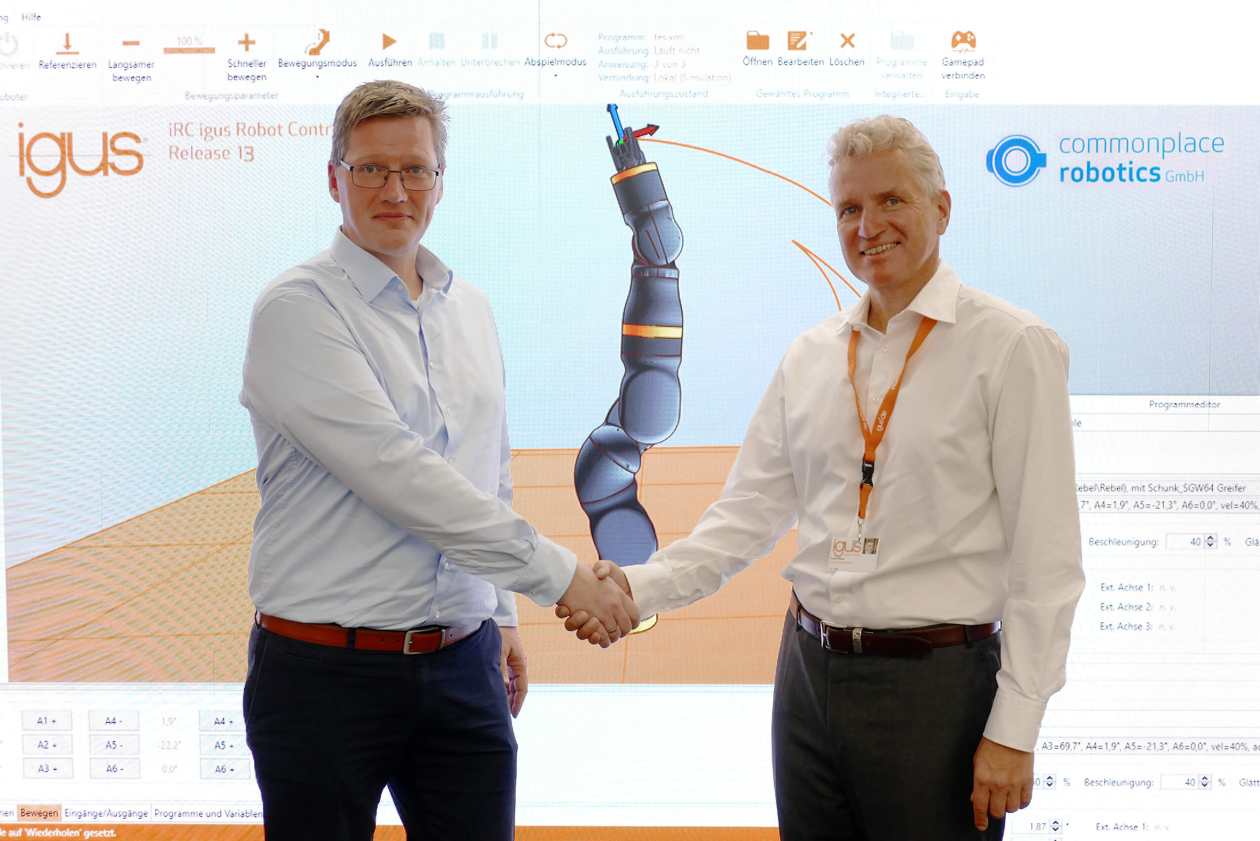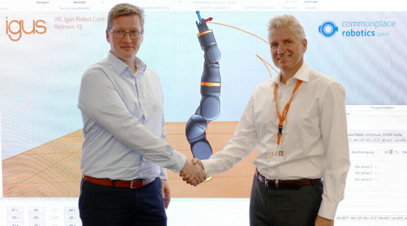 Commonplace Robotics è specializzata nella produzione di software e sistemi di controllo intuitivi, nonché nell’elettronica di potenza per la robotica, sia per l’industria sia per il mondo dell’istruzione. Le due aziende collaborano intensamente già da sei anni e, tra le altre cose, hanno sviluppato il sistema di controllo igus Robot Control (iRC), che integra i componenti cinematici igus a basso costo.