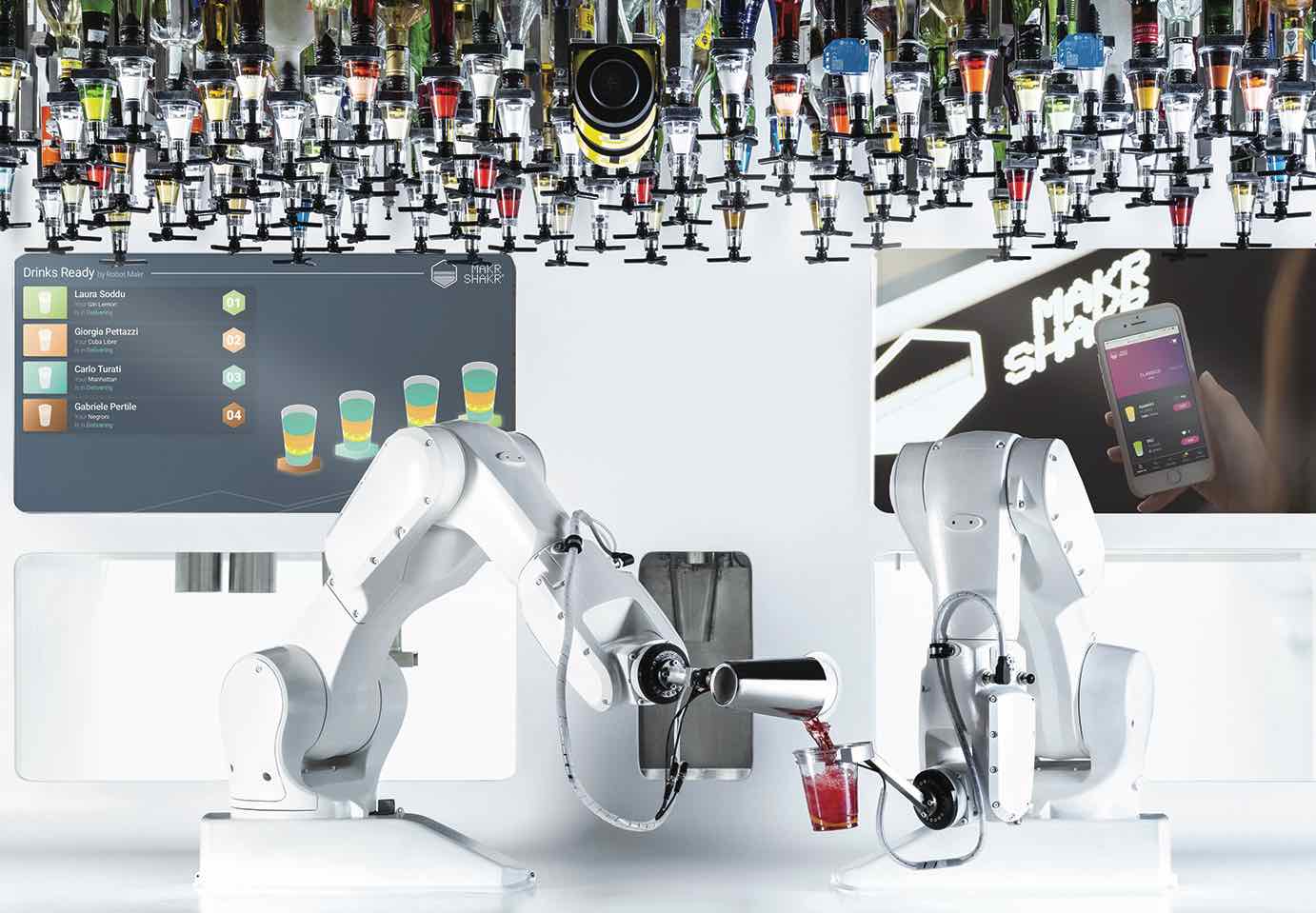 Makr Shakr, azienda guidata da un team di ingegneri e designer, ha progettato il primo bar robotico al mondo dove il cliente diventa, in qualche modo, mixologist oppure si affida alle ricette del cobot per sorseggiare classici pre e after dinner. Alla base di tutto questo c’era anche un’altra volontà, quella di far uscire le macchine industriali dai contesti di automazione per immergersi nella vita quotidiana civile. Dalle linee di produzione delle fabbriche al puro intrattenimento, Toni (questo il nome del bar robotizzato) ha già riscosso un grande successo in tutto il mondo, da San Francisco a Londra, da Dubai alle navi da crociera Royal Carribean.