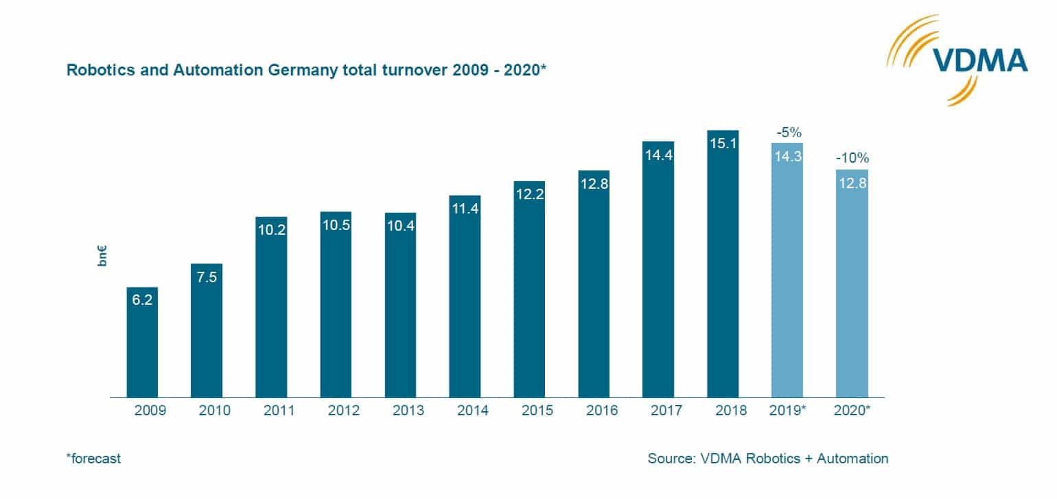 Dopo la frenata del 2019, secondo le previsioni della VDMA Robotics + Automation nel 2020 il comparto tedesco dell’automazione e della robotica potrebbe registrare un ulteriore calo del 10%, tornando ai valori del 2016. Ma l’industria tedesca – Automotive in testa – proverà a ripartire. A giugno l’appuntamento a Monaco di Baviera con la fiera Automatica